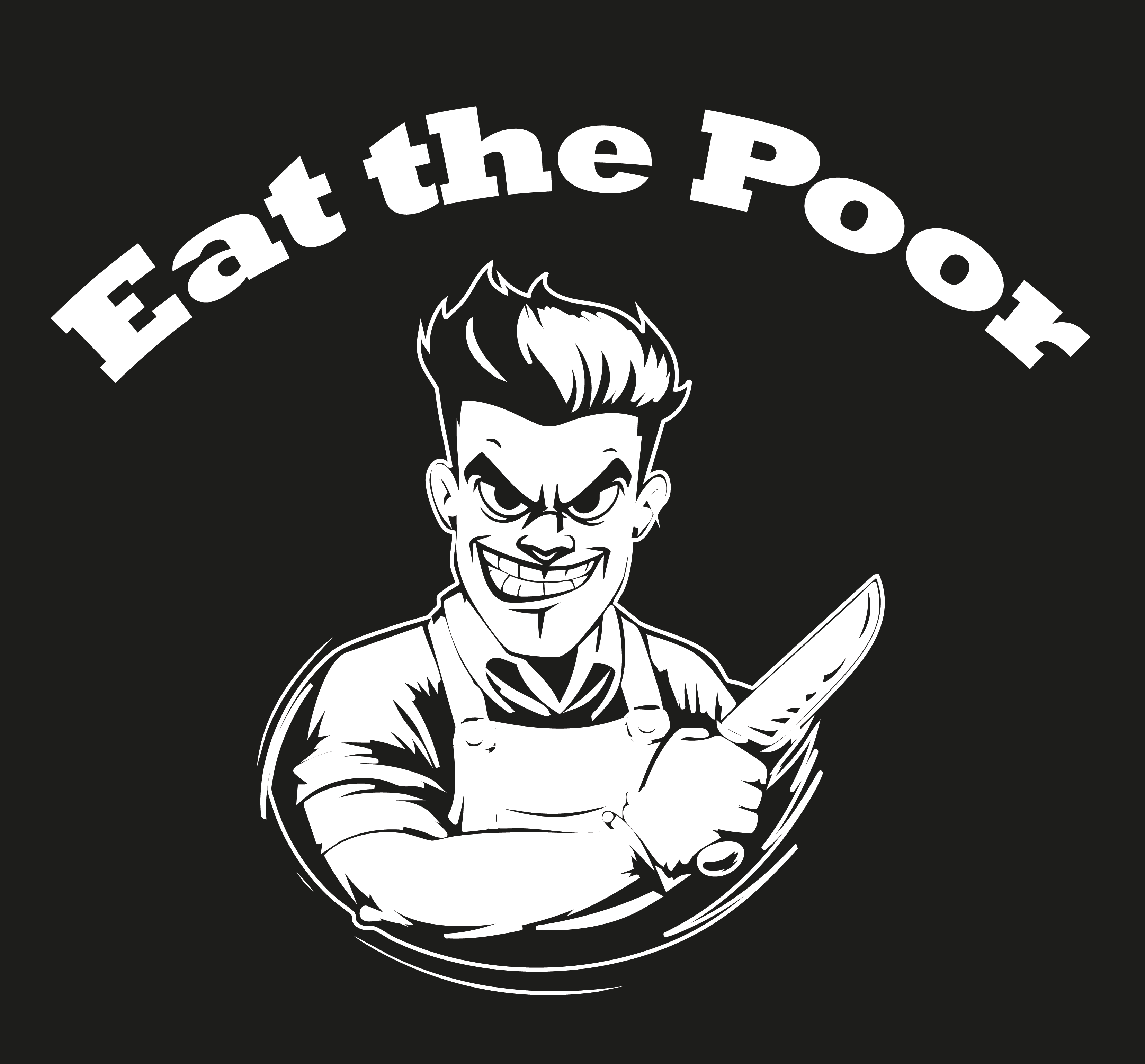 Auffälliges, schwarzes Unisex-T-Shirt mit kontrastierendem weißen Aufdruck „Eat the Poor“.