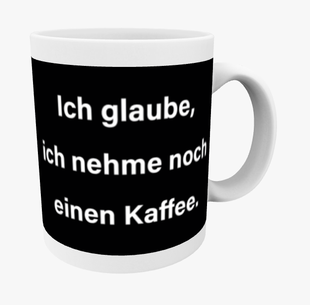 auf der Rückseite "Ich glaube, ich nehme noch einen Kaffee."