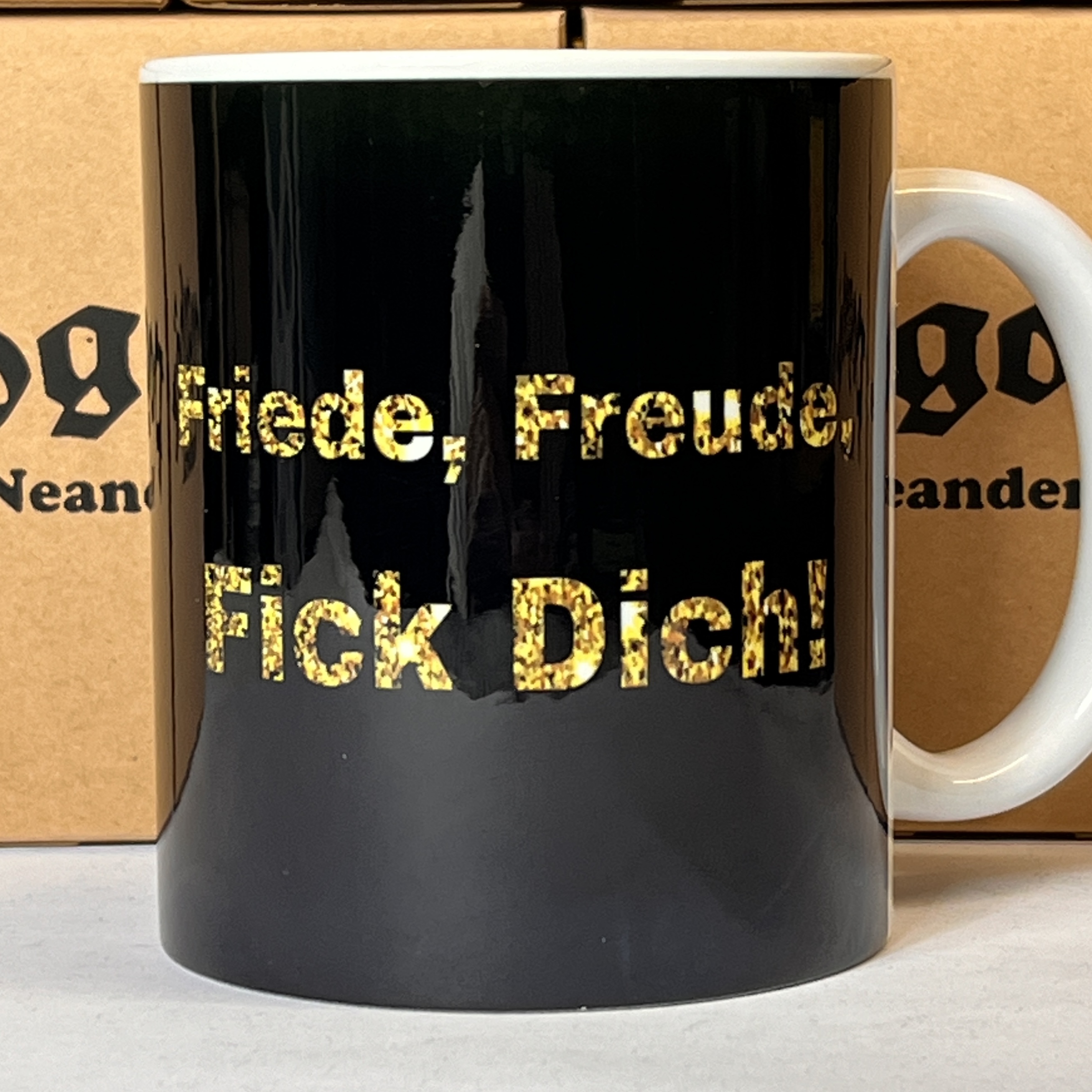 Keramiktasse "Friede, Freude, Fick Dich!",