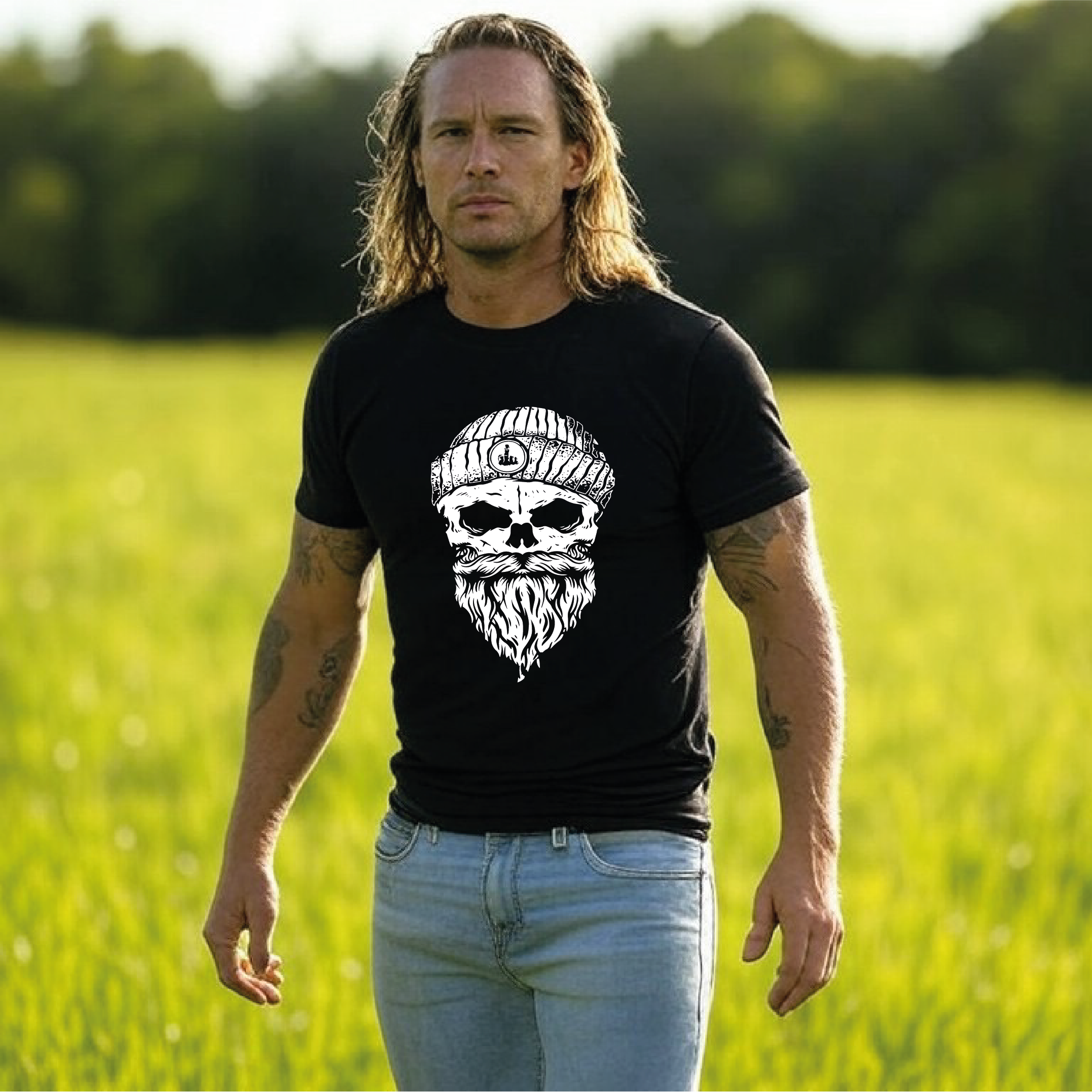 Totenkopf mit Bart und Mütze