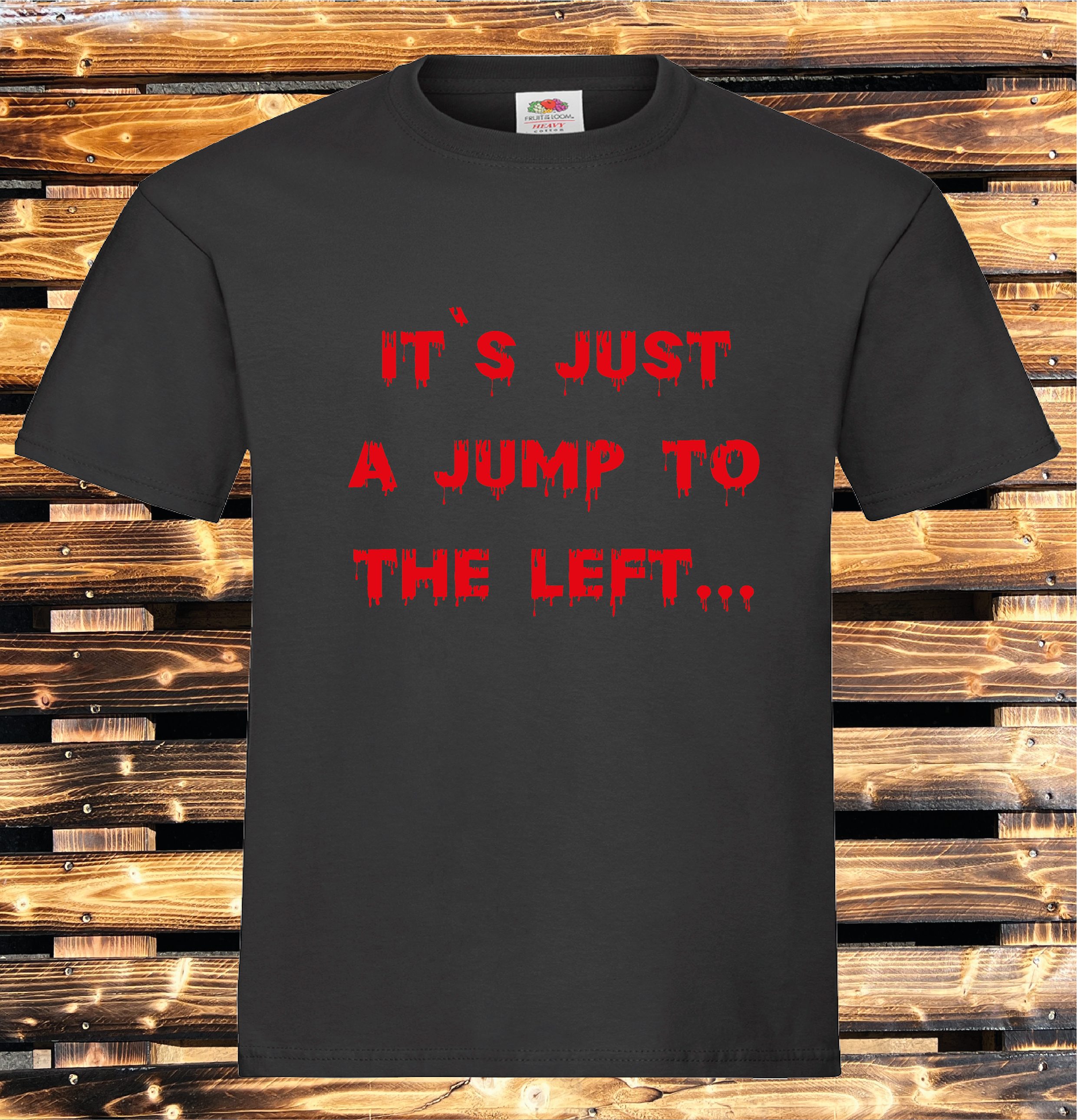 T-Shirt mit individuell angefertigtem Aufdruck IT`S JUST A JUMP TO THE LEFT