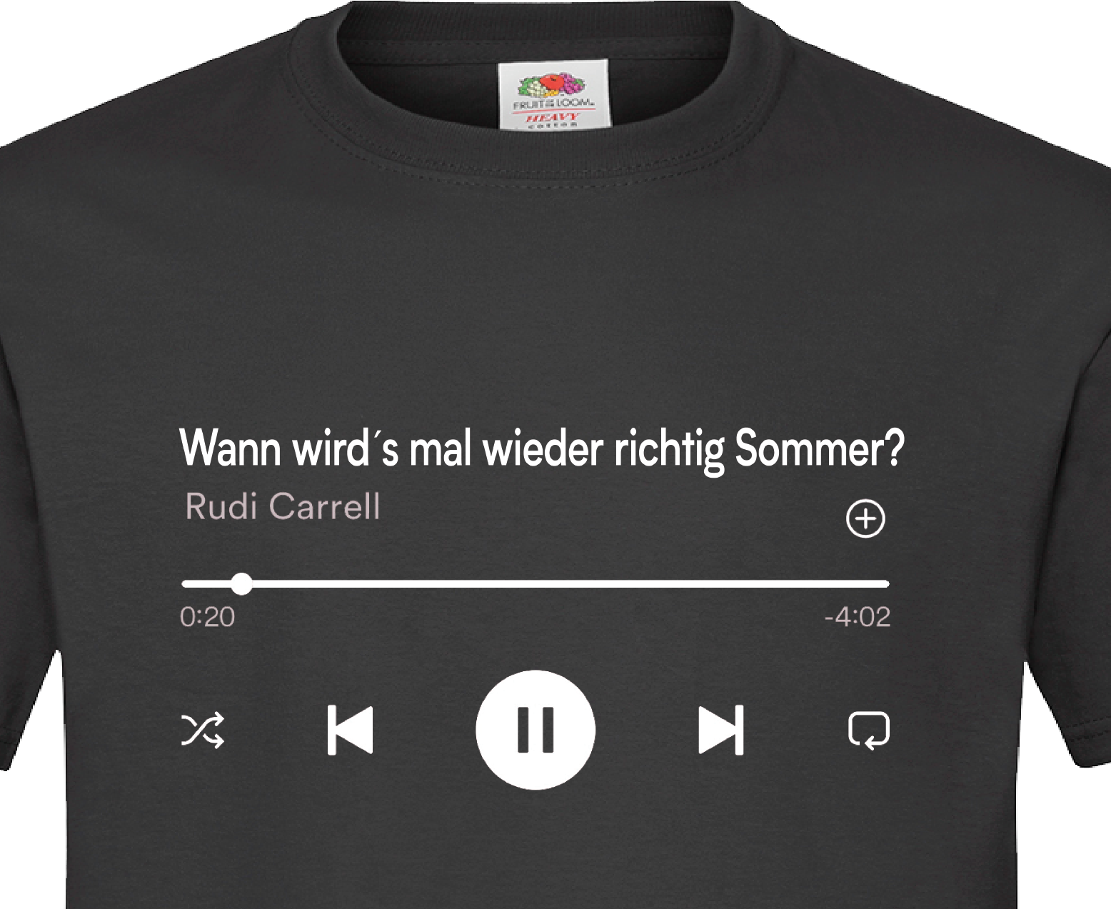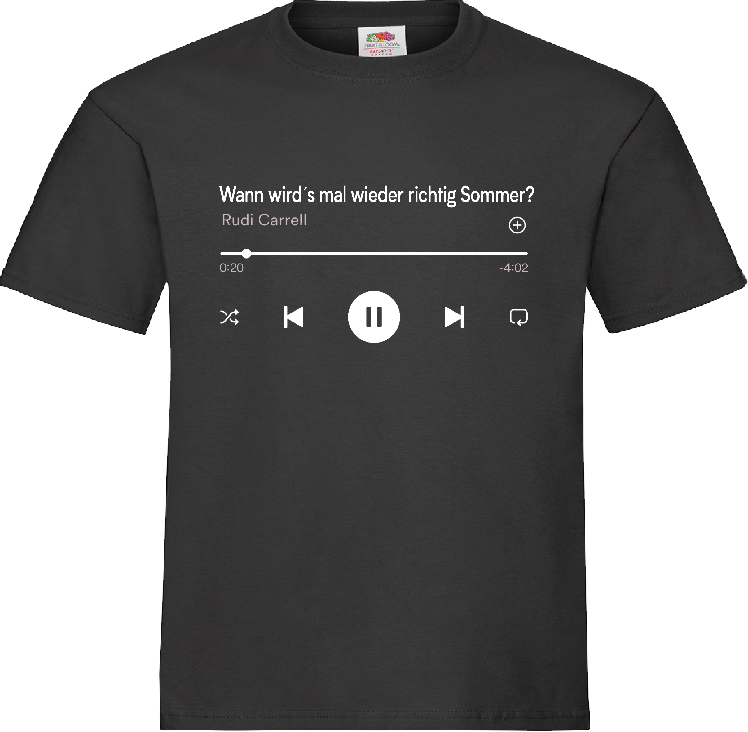 T-Shirt mit individuell angefertigtem Aufdruck einesMusic Players mit dem Titel Wann wird`s mal wieder richtig Sommer?