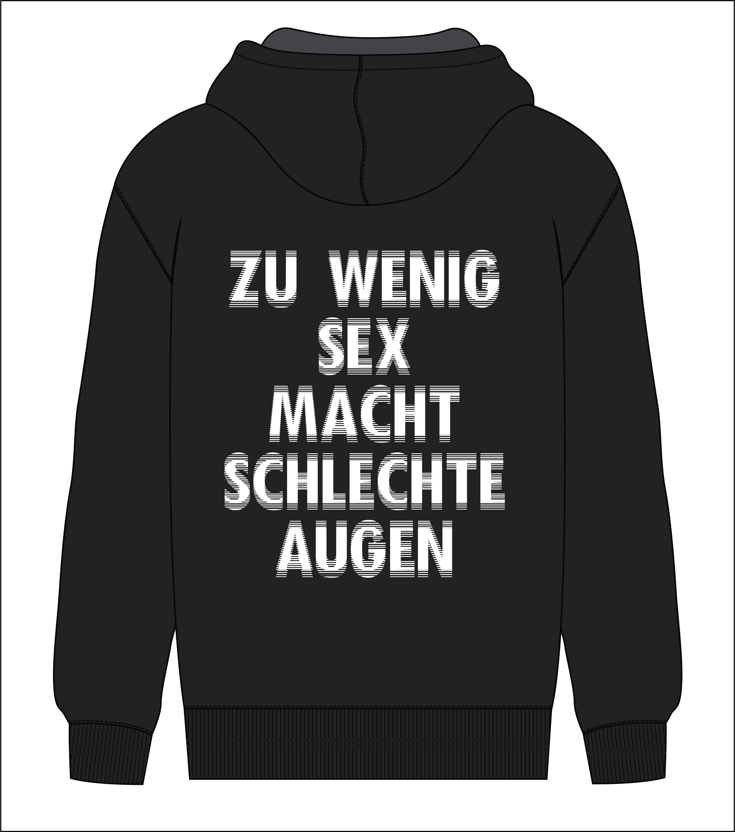 Hoodie mit individuell angefertigtem Aufdruck Zu wenig Sex macht schlechte Augen auf dem Rücken.